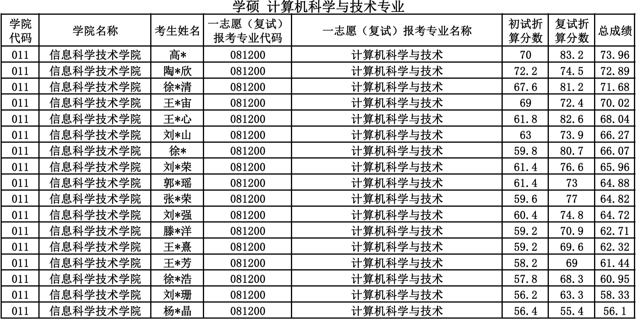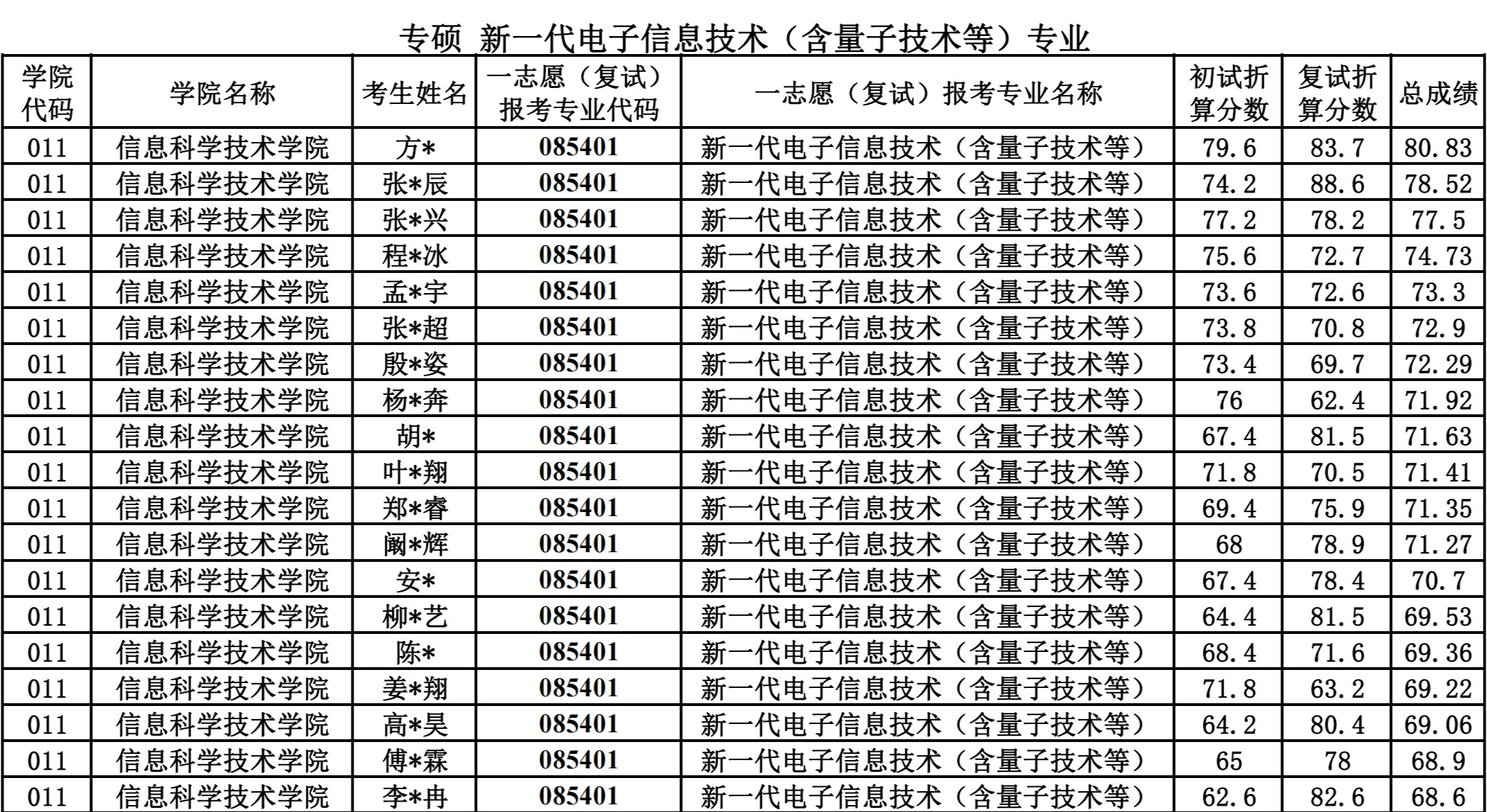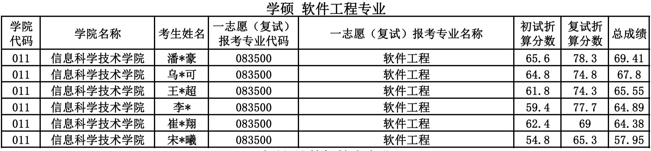 信息科学技术学院2024硕士研究生一志愿复试公示