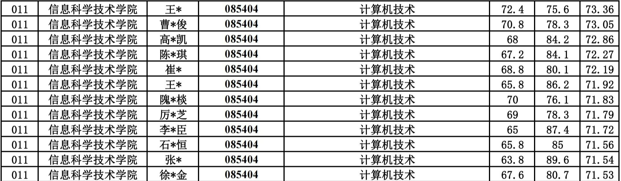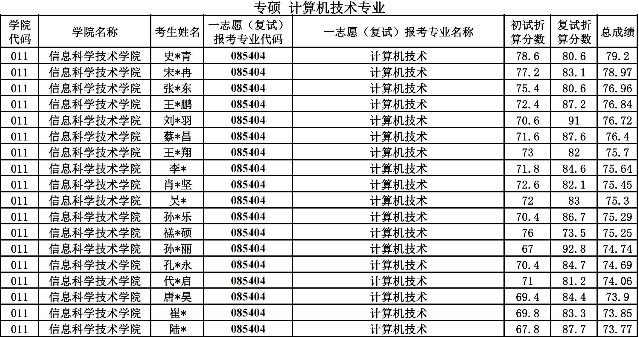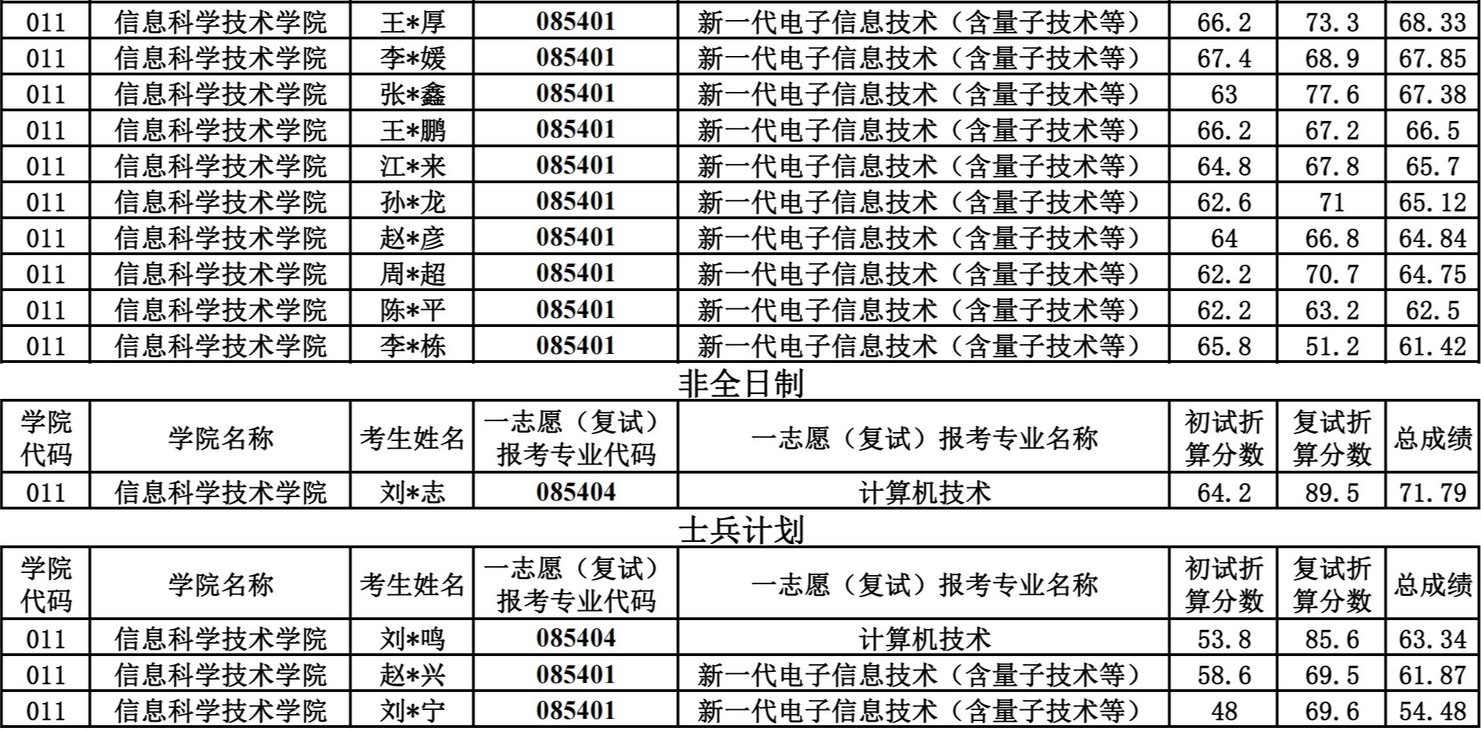 信息科学技术学院2024硕士研究生一志愿复试公示