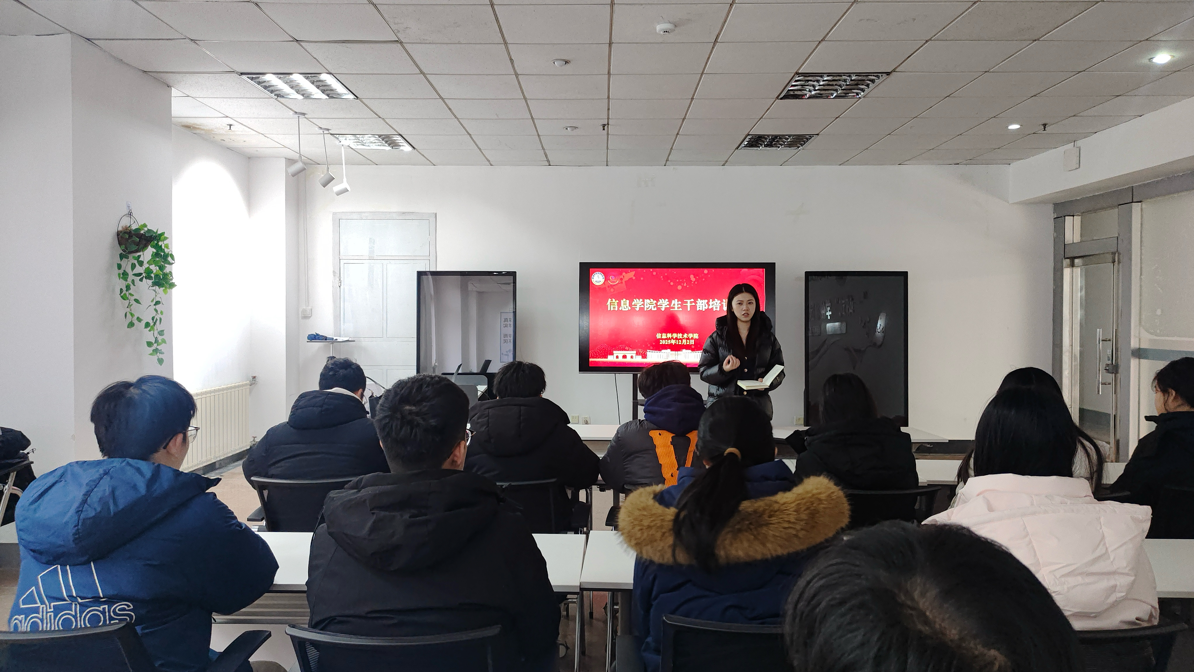 12月2日,信息学院在学校一站式学生社区学业发展中心开展学生干部赋能培训活动,信息学院辅导员马天晨、2023级主要学生干部参加。