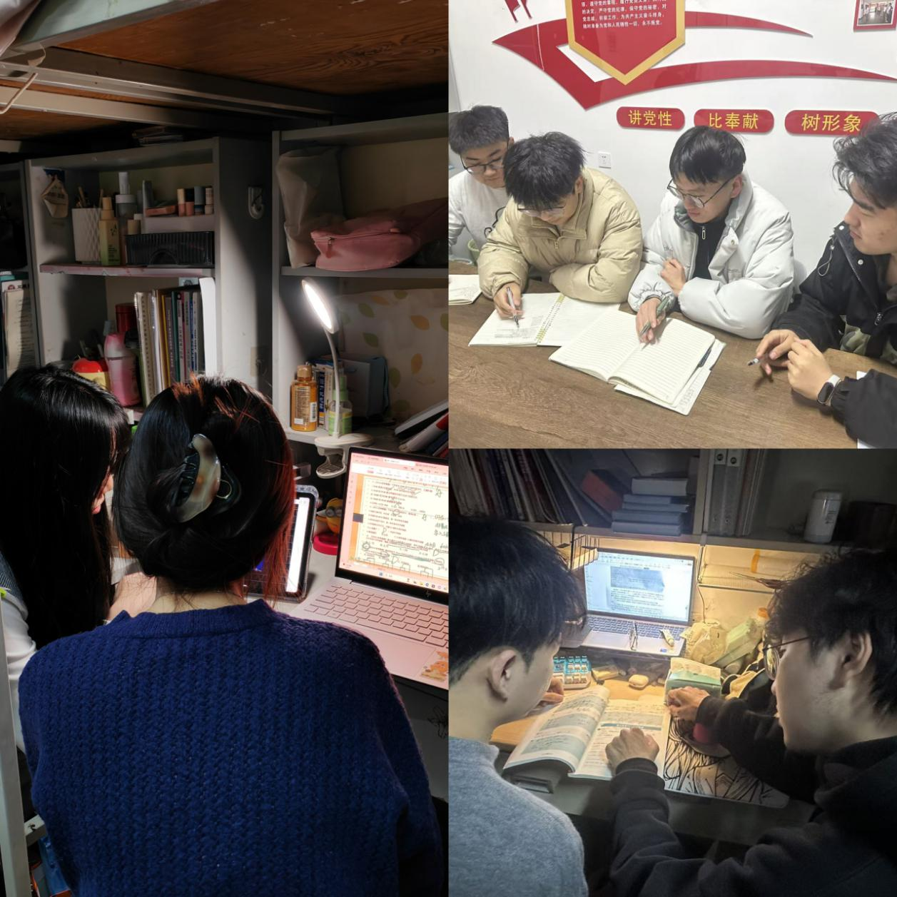 除线上集中指导外,团支部积极引导各寝室成立互助学习小组,鼓励成员结合自身学科优势与薄弱环节,针对性开展互补学习。大家约定固定时段集中交流,分享解题技巧、互相督促复习进度,共同解决学习中的困难。