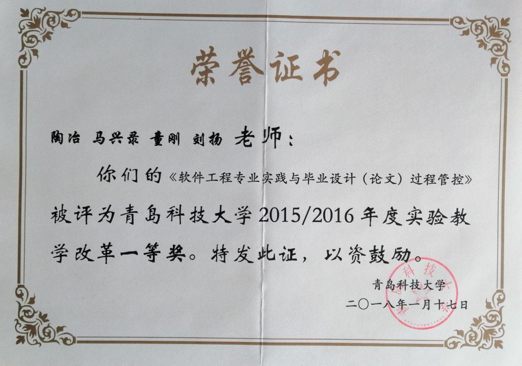 5、青岛科技大学实验技术改革奖--软件工程专业实践与毕业设计(论文)过程管控